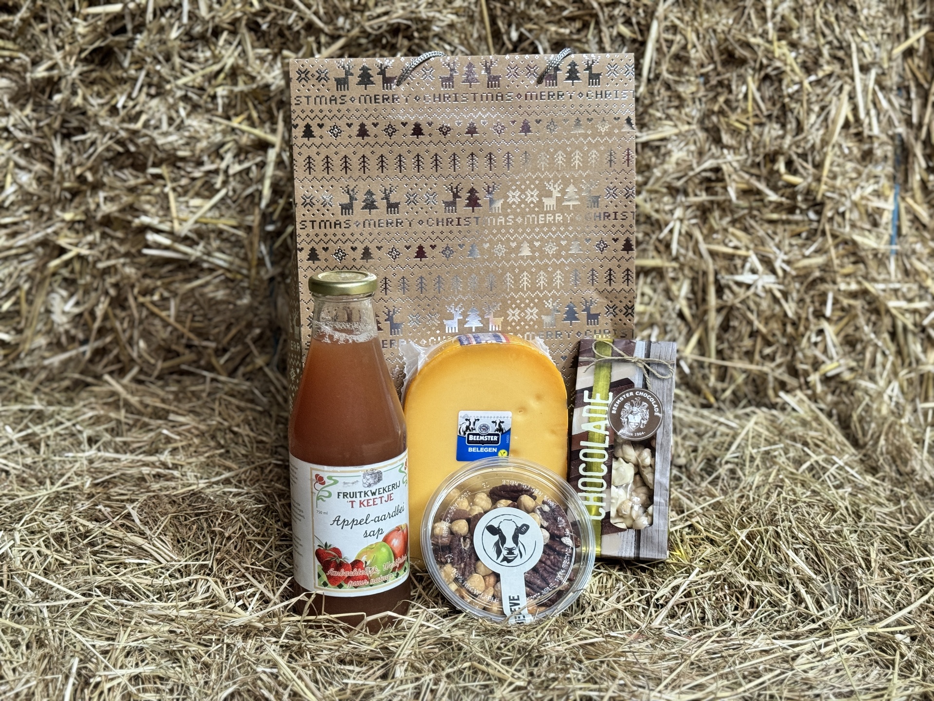 Bij een grote afname verpakken we de pakketten in een luxe kerstdoos. Ook zijn er vele mogelijkheden met bedrukking eigen logo of eigen invulling van het pakket.