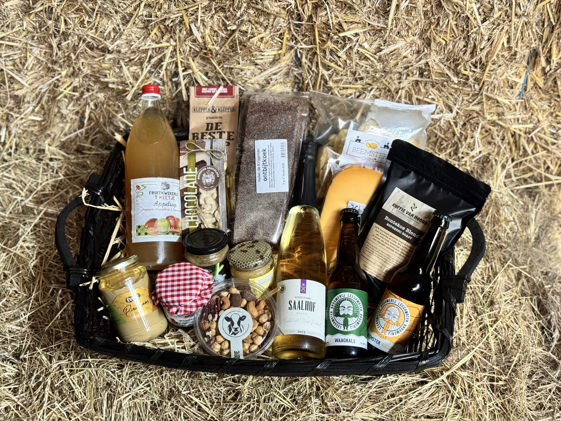 Bij een grote afname verpakken we de pakketten in een luxe kerstdoos. Ook zijn er vele mogelijkheden met bedrukking eigen logo of eigen invulling van het pakket.